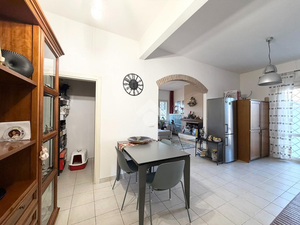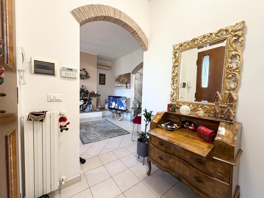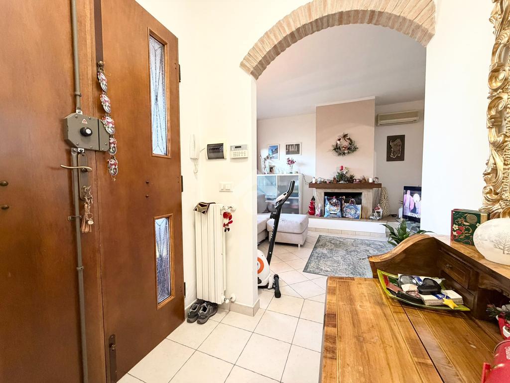 In contesto tranquillo e ben servito, proponiamo in vendita un appartamento al primo piano di una bifamiliare. L’ingresso si apre su una zona giorno ampia e luminosa, dove ad accoglierci troviamo un camino a legna per momenti di convivialità e relax, con accesso alla cucina e a un comodo ripostiglio. La zona notte è ben distribuita e comprende due camere matrimoniali e un bagno finestrato completo di vasca e box doccia.