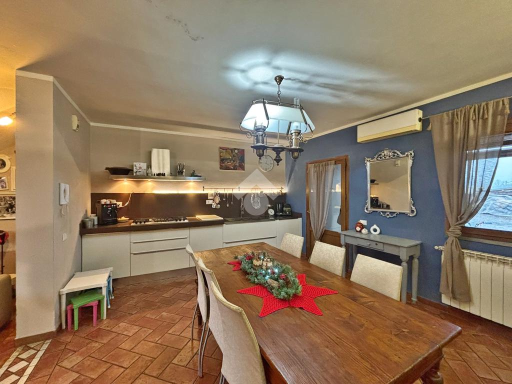 Al piano terra si sviluppa la zona giorno accogliente e spaziosa, composta da una luminosa sala e una cucina attualmente zona openspace, ma con possibilità anche di creare due ambienti separati a seconda dei propri gusti.