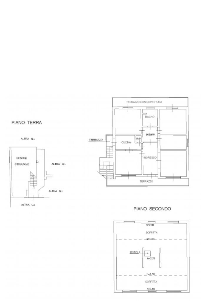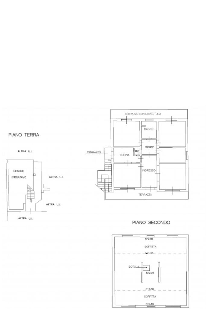 A completare la proprietà è presente una soffitta ad uso esclusivo, accessibile tramite botola, le cui altezze interne variano da 0,85 m nei punti più bassi, a 1,50 m nelle parti intermedie, fino a 2,25 m nel punto centrale.